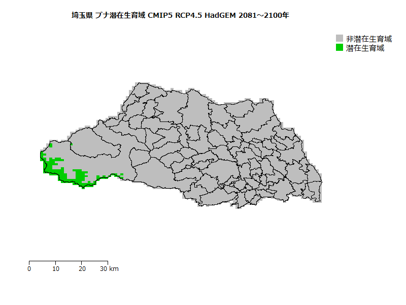 ブナ潜在生育域面積の将来変化予測