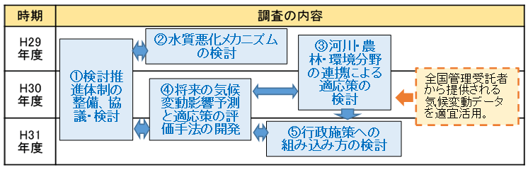 平成30年度から平成31年度にかけては、協議会での助言も踏まえつつ、気候変動影響予測および適応策の検討を行った。