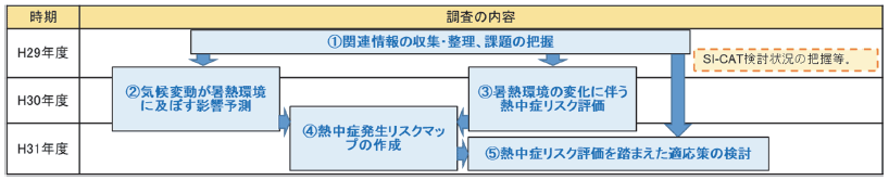 平成31年度は地区別日最高気温マップの作成、統計モデルの妥当性の確認、熱中症発生リスクマップの作成、適応策の検討等を実施した。
