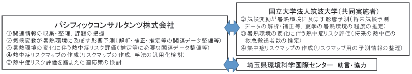 さいたま市では、地球温暖化による気温上昇にヒートアイランド現象が重なることで、さらに暑熱環境が悪化することが考えられる。そこで本調査では、さいたま市をモデルに、将来の猛暑日等の傾向を考慮した地域・地区レベルにおける熱中症の影響評価手法を構築し、地域・地区特性に応じた適応策を検討する。