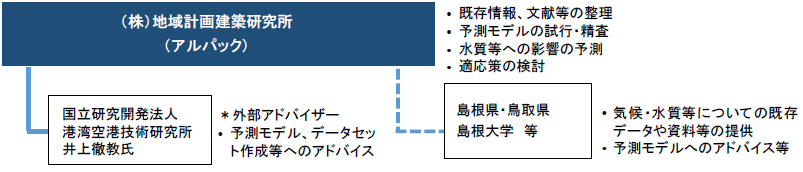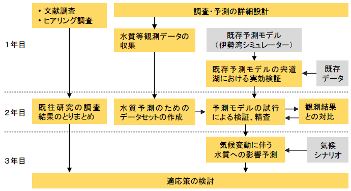 最終年度となる平成31年度は、DO等の水質についても影響評価を試行するとともに、これまで宍道湖、中海を別々にシミュレーションしていたものを連結し、影響予測精度の向上を進めるとともに、適応策の検討を行った。