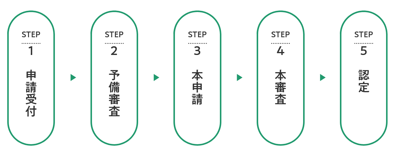 審査・認定にかかる各手順は以下の通り。なお書類提出から認定取得まで6か月程度を見込む。