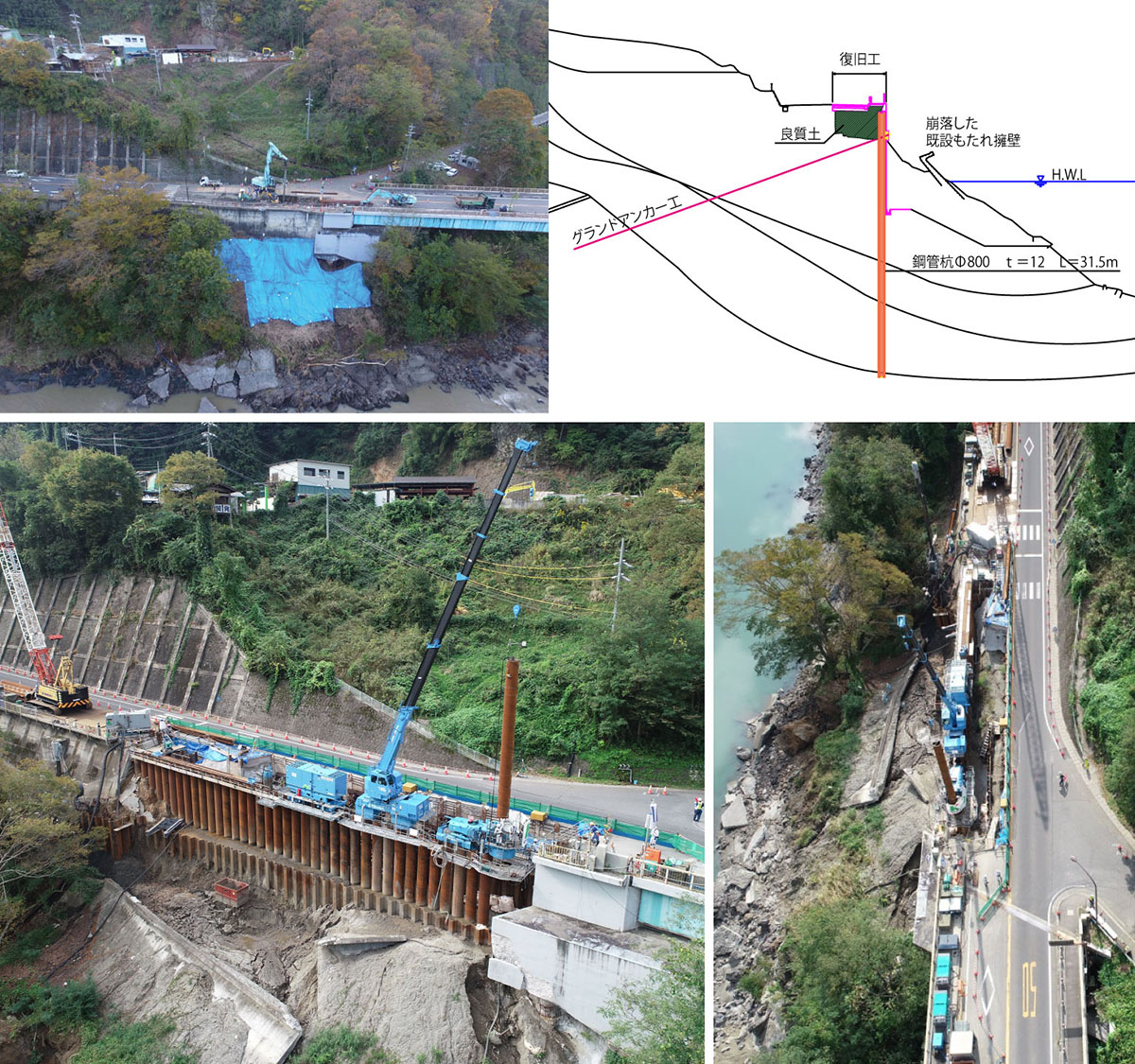 図2 台風の影響で一部崩壊した国道の復旧工事(長野市)