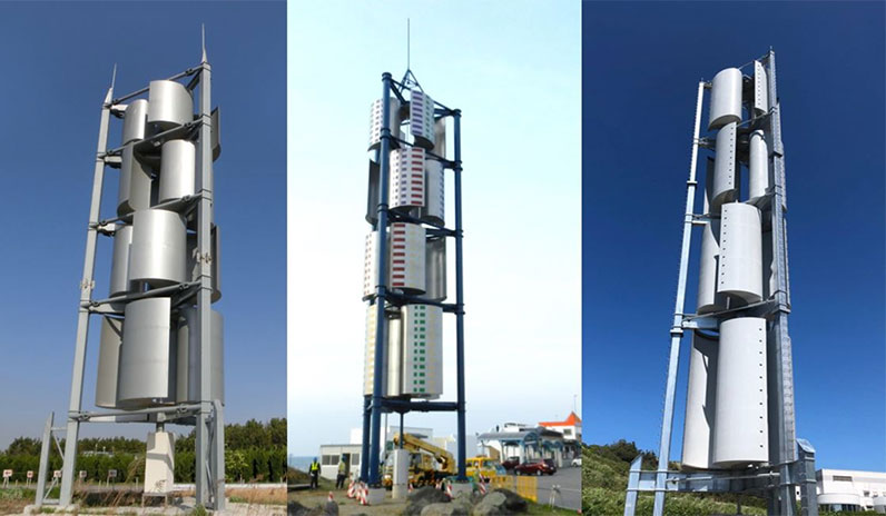 大型の災害発生時において、地域全体の電力復旧には何日も必要となるが、その間の情報網(携帯電話等)の遮断が最も懸念される。そこで、携帯(無線)基地局に供給する電源に当社の風力発電機を利用し、独立電源(図2、3)とすることによって、基地局を安定稼働できるため、災害時でも情報網の確保が可能となる。また、その発電機は、非常用の携帯端末充電電力としての利用も可能である。さらに、非常時の電源用としての20KWトルネード風力発電機(図4)も開発した。