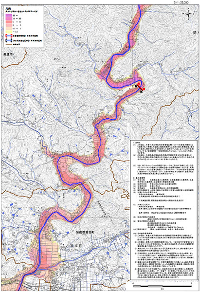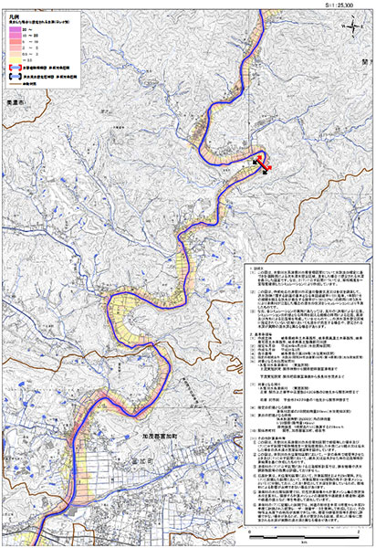 図2 計画規模[L1]における水害危険情報図の作成例(岐阜県 津保川)