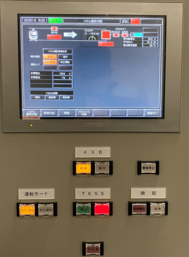 TESSは、モノレール⾞両がブレーキを使用した際に発生する回生電⼒を貯蔵し、エネルギーを有効に活用することを可能とする。これにより、停電時でも全線への電源供給が可能となり、列⾞が駅間で停⽌したままとなる状態を回避することができる。 これらのリスク管理の充実・強化を目的とした取り組みによって事故を未然に防止し、安全運行を確保することへと繋がる。
