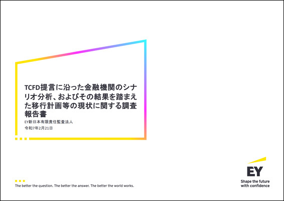 金融庁が、本邦の主要な金融機関(銀行、損害保険会社、生命保険会社)がTCFD提言に基づいて開示しているシナリオ分析の状況・各セクターの違い、および移行計画の内容を比較・調査することを目的としてEY新日本有限責任監査法人に委託した調査の報告書を公表しました。