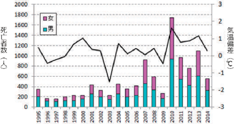 - 熱中症による死亡者数は、近年増加傾向にあります。