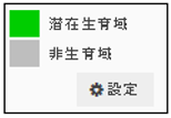 - 下の二つの図は、21世紀末におけるハイマツの生育が可能な地域(潜在生育域)の分布予測です。黄緑が潜在生育域を示しています。