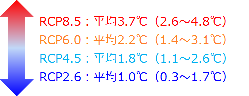 図 RCP別の21世紀末における現在(1986~2005年平均)からの気温上昇量