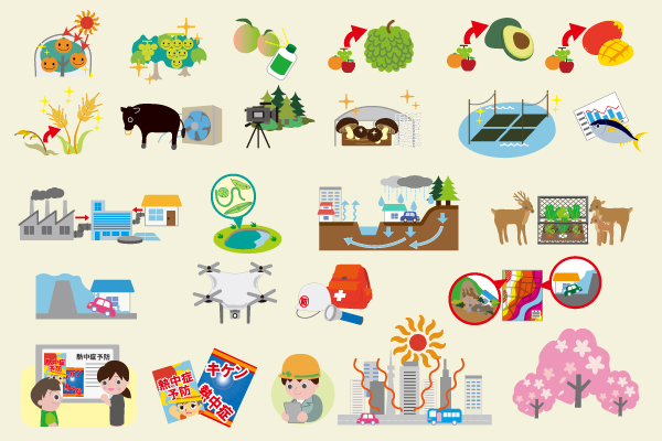 - これらは国立環境研究所が作成したイラスト素材です。適応の啓発目的でご利用ください。
