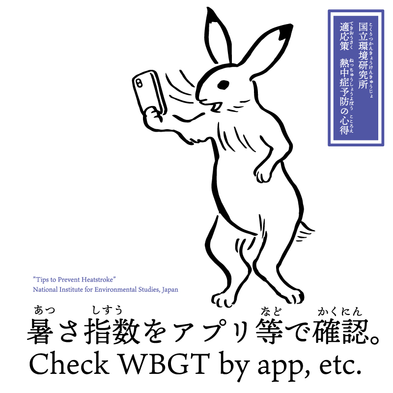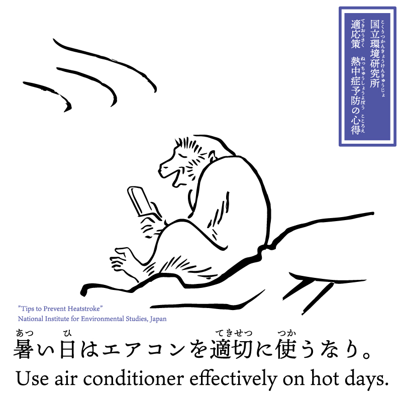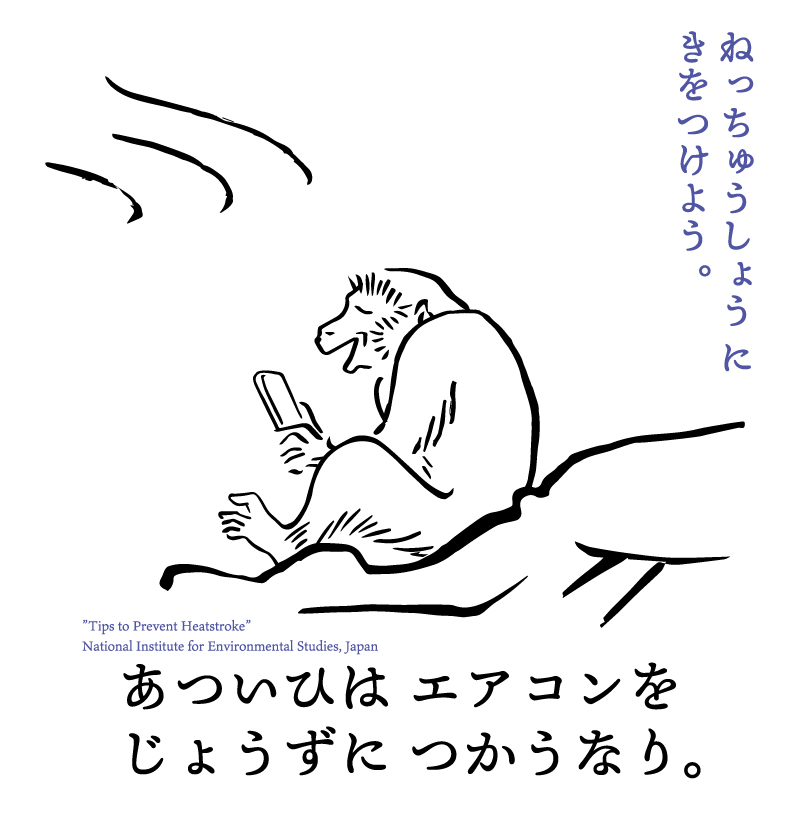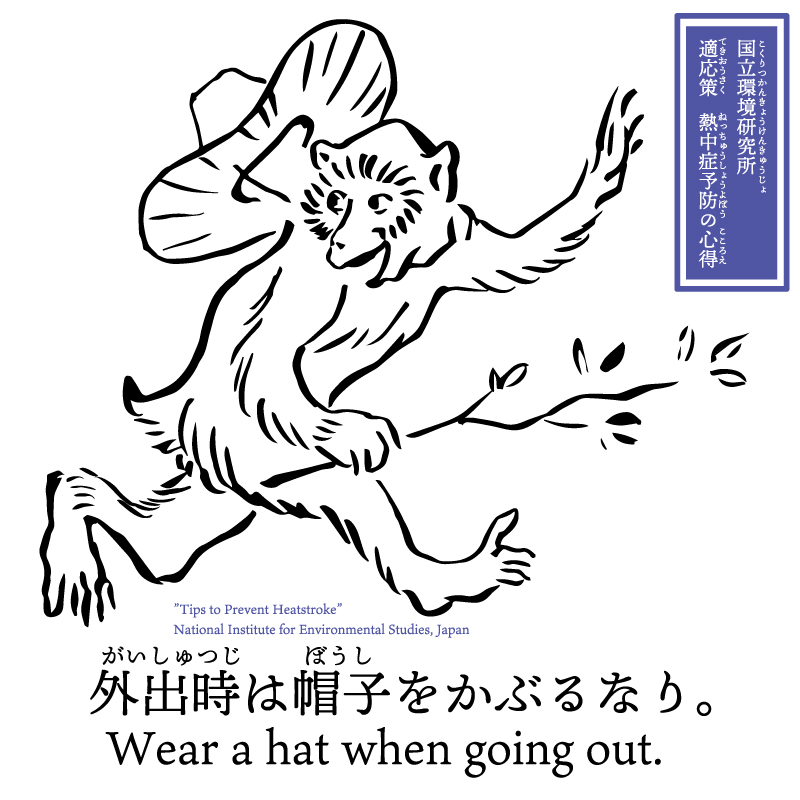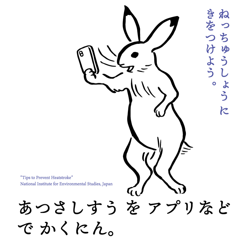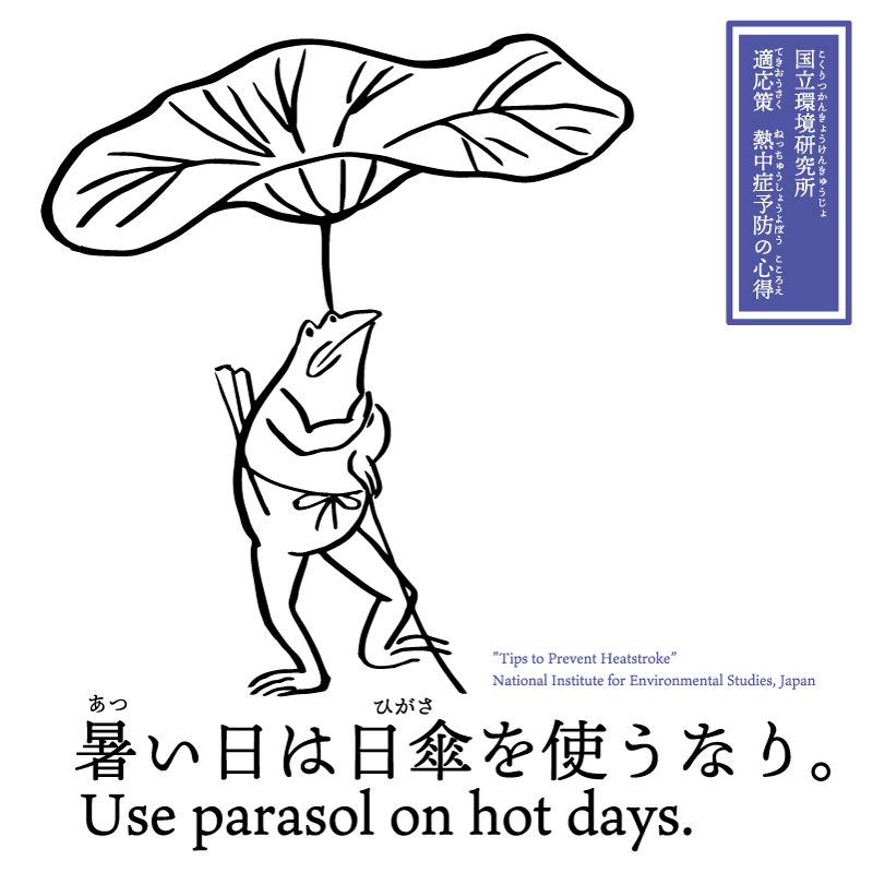 「鳥獣戯画」を手本とした動物たちで綴られた熱中症予防策の心得集。ご家族やご友人へのちょっとしたメッセージや、ご自宅や学校、職場の壁に貼るなど普及啓発にご利用ください。