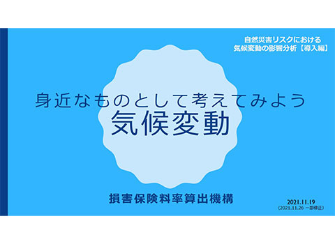 以前より夏が暑くなった、集中豪雨が増えたなどと実感する人もいると思います。身近に起きていることを事例に気候変動について紹介しています。損害保険料率算出機構が取り組んでいる「自然災害リスクにおける気候変動の影響分析」の導入編です。