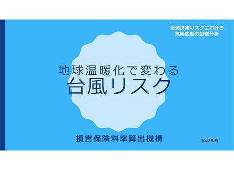 上記の「身近なものとして考えてみよう気候変動」では、身近に起きていることを事例に気候変動について紹介しました。今回は「台風(風災)のリスク評価」について解説しています。台風などの自然災害は激甚化していて、日本各地で損害が増加していますが、シミュレーションなどによるリスク評価の手法を使い、適宜算出方法を見直しています。