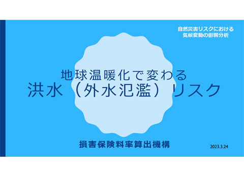 今回は「外水氾濫のリスク評価」について解説します。自然災害は将来の予測が難しい分野ですが、将来の保険金支払いに必要となる金額を見込んだうえで、それに見合った保険料を設定するため、シミュレーションなどによるリスク評価の手法を用いて火災保険の参考純率の算出を行っています。