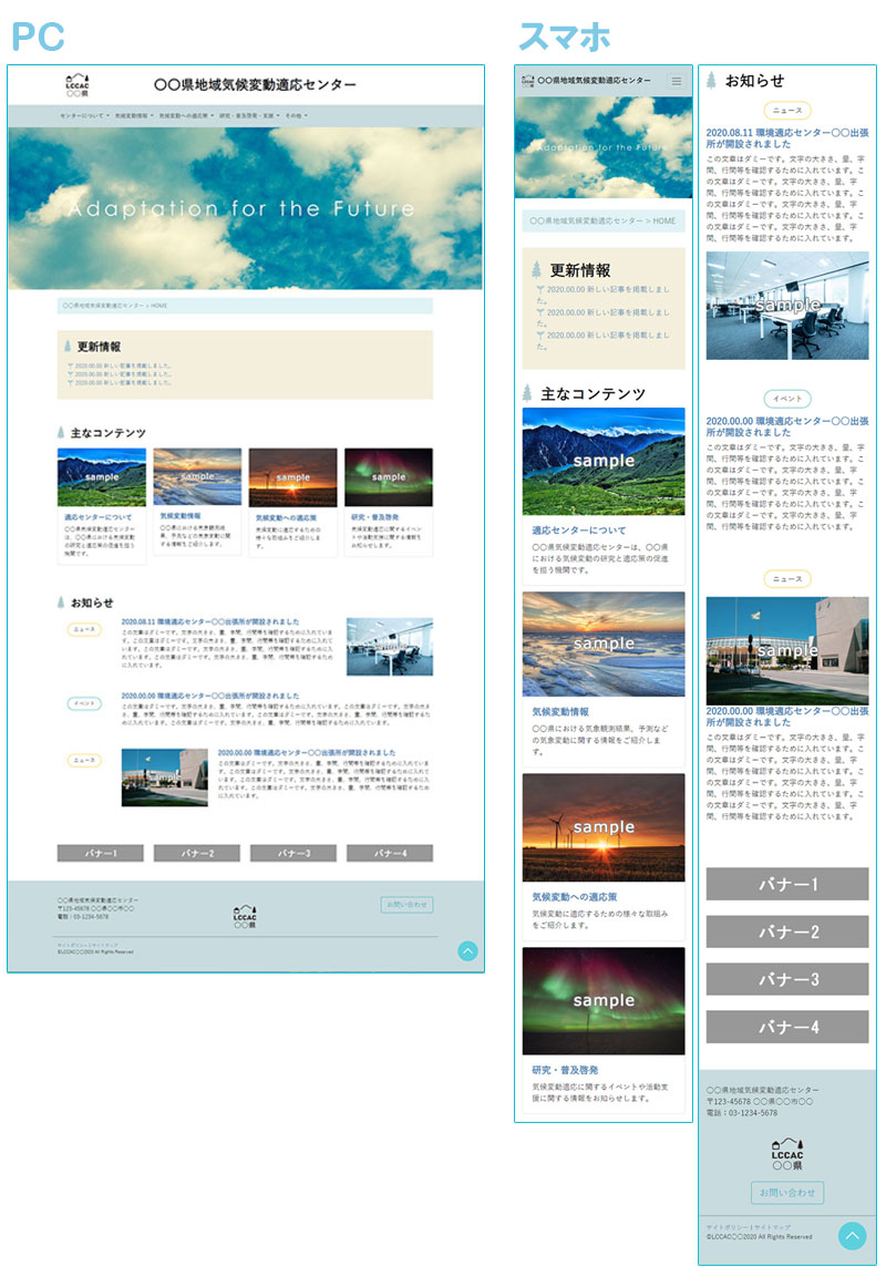 地域気候変動適応センターから市民や事業者の方々への情報発信においてウェブサイトは有力なツールの一つです。ここでは、地域気候変動適応センターのウェブサイト開設に活用いただける共通テンプレート(htmlテンプレート、マニュアル)を提供します。これからウェブサイトを開設するセンターの方などは是非活用をご検討ください。